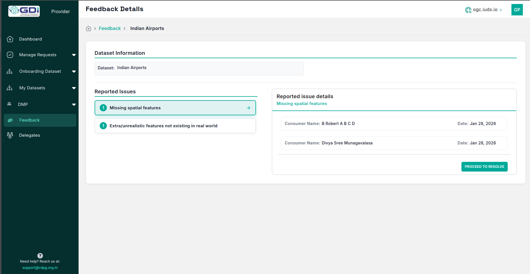 Figure 5. Provider panel enabling “Proceed to Resolve” button to resolve issues